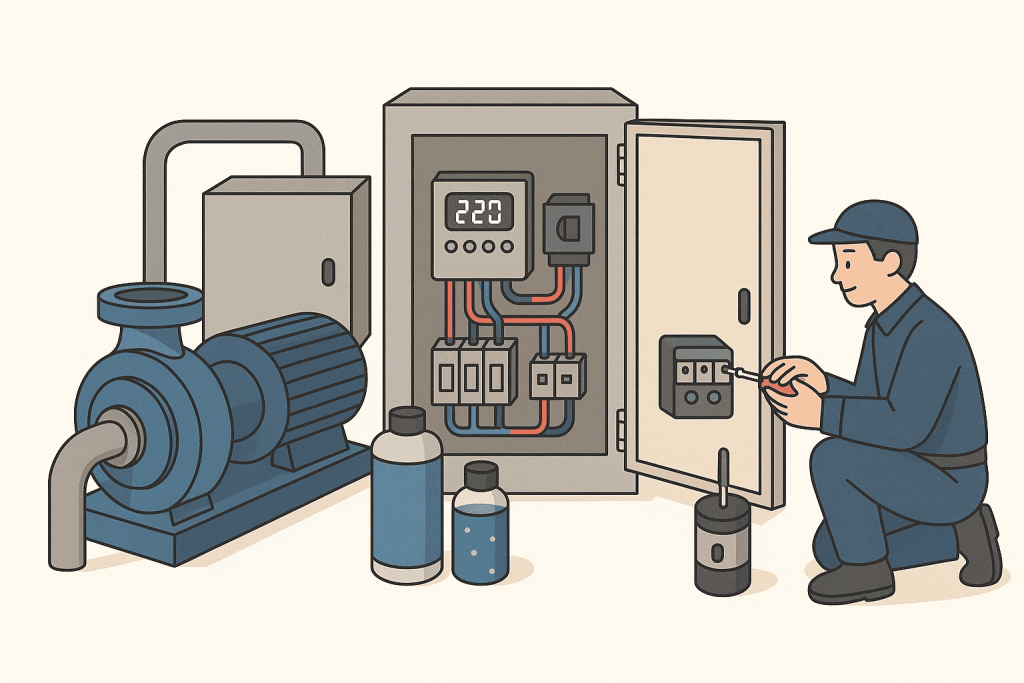 ポンプや制御盤、センサー類など、水処理に関連する電気機器の販売・修理を行っています。既存機器のメンテナンスや故障時の交換も迅速に対応。